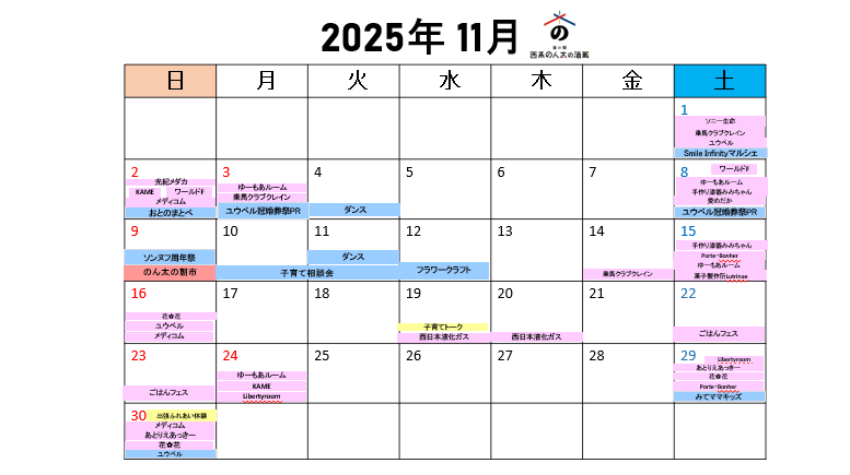 イベント 2025.10.27道の駅西条のん太の酒蔵11月のイベントスケジュール