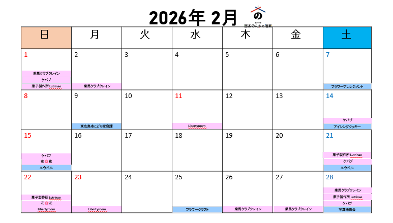 イベント 2026.01.23道の駅西条のん太の酒蔵2月のイベントスケジュール