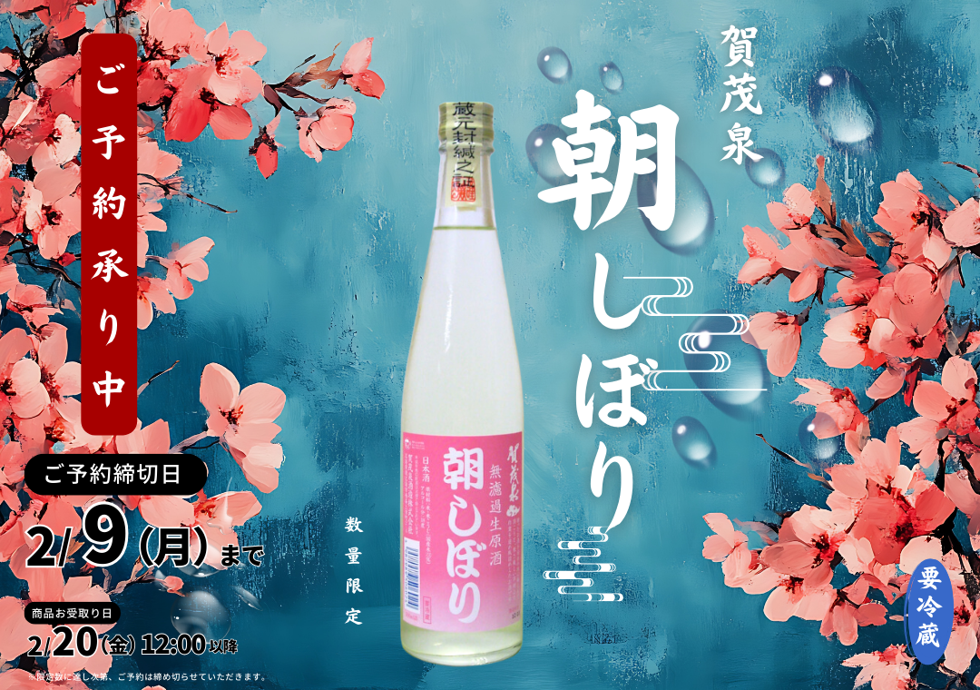 お知らせ 2026.01.22賀茂泉酒造 日本酒「朝しぼり」ご予約受付開始のお知らせ