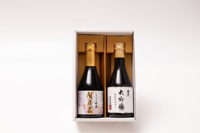 西条の酒米・山田錦を清らかな酒都・西条の伏流水と広島杜氏伝承の技で醸した純米大吟醸酒『賀茂泉酒造 延寿 純米大吟醸』と、低温長期間の吟醸仕込みにて醸した香り立ちなめらかな味わいの大吟醸酒『福美人酒造 大吟醸』。小容量ながらも造り手の想いがしっかりと詰まった呑み比べギフトです。