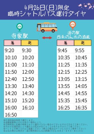 蔵開き関連イベント「かんぱい!春まつり」4月26日(日)限定 臨時シャトルバス運行のお知らせ